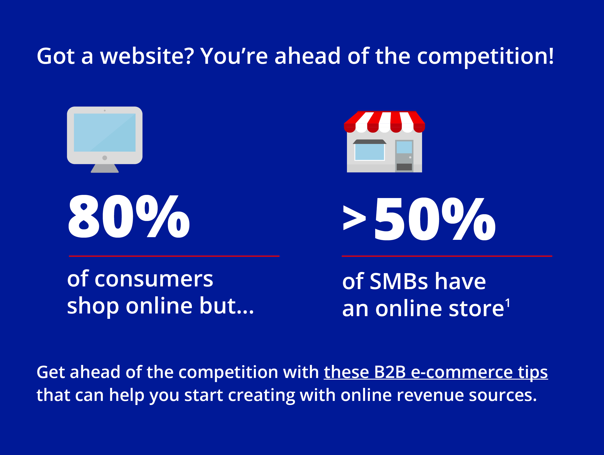 Did you know that 80% of us shop online, but less than 50% of small businesses have an online store? Get ahead of the competition with these B2B e-commerce tips that can help you start creating with online revenue sources.