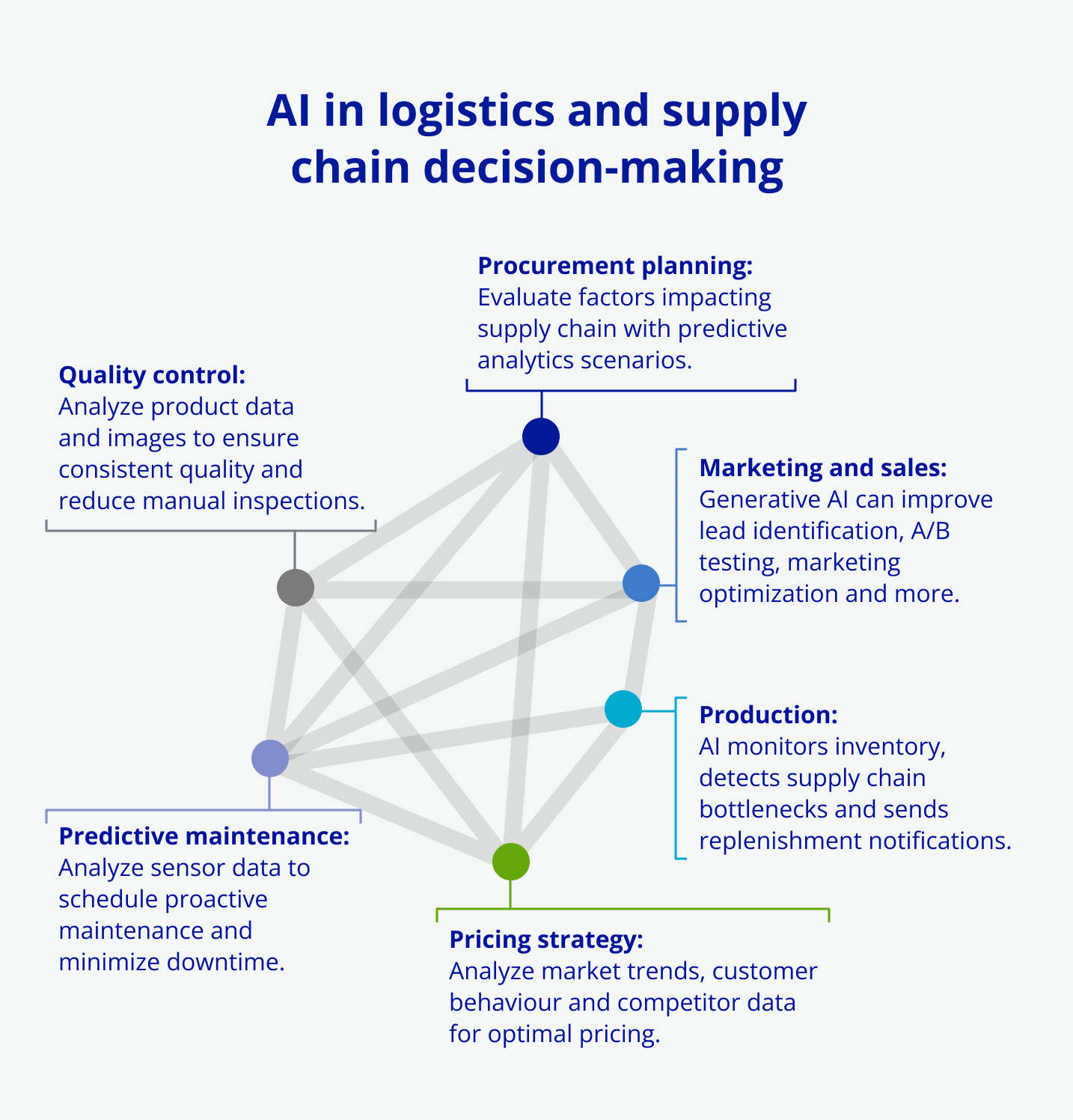 Using AI to enhance the visibility of your supply chain allows you to have a clear and real-time understanding of every step in the process. Ultimately, it empowers you to make smarter decisions, improve efficiency and deliver products to your customers faster and more reliably.
