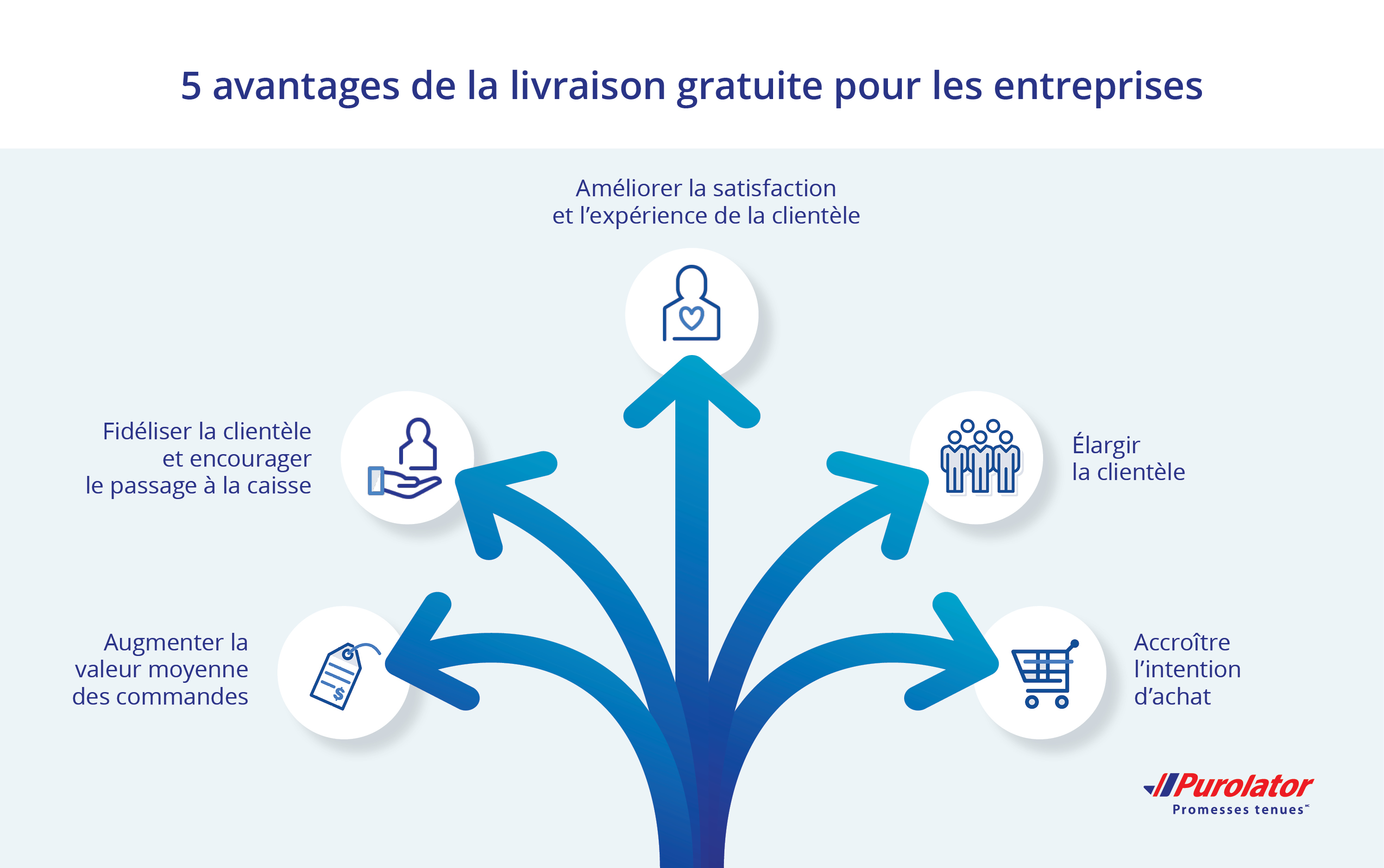 Dans le cadre de votre stratégie logistique, la livraison gratuite favorise votre croissance et votre résilience, surtout lorsqu’elle est combinée à des services et à des tactiques tirant parti des tendances en matière d’habitudes de consommation. Les clients ont plus d’options que jamais, donc le choix du bon fournisseur de services logistiques, comme Purolator, peut aider à différencier votre entreprise de la concurrence et à ajouter de la valeur unique à vos produits et services.