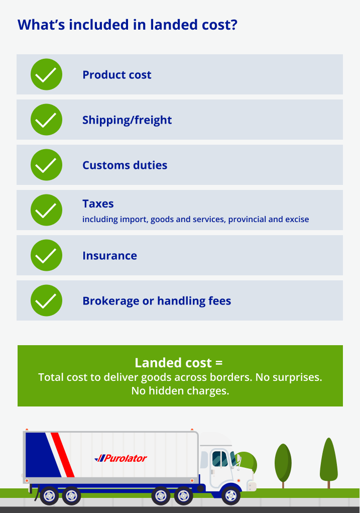 À la base, le coût livré total est le coût total d’acheminement du produit au-delà des frontières, de son dédouanement et de sa livraison à l’acheteur. Il comprend les coûts d’expédition internationale, les droits de douane, les taxes d’importation, l’assurance, les frais de courtage et tout autre frais de manutention additionnelle encouru durant l’acheminement.