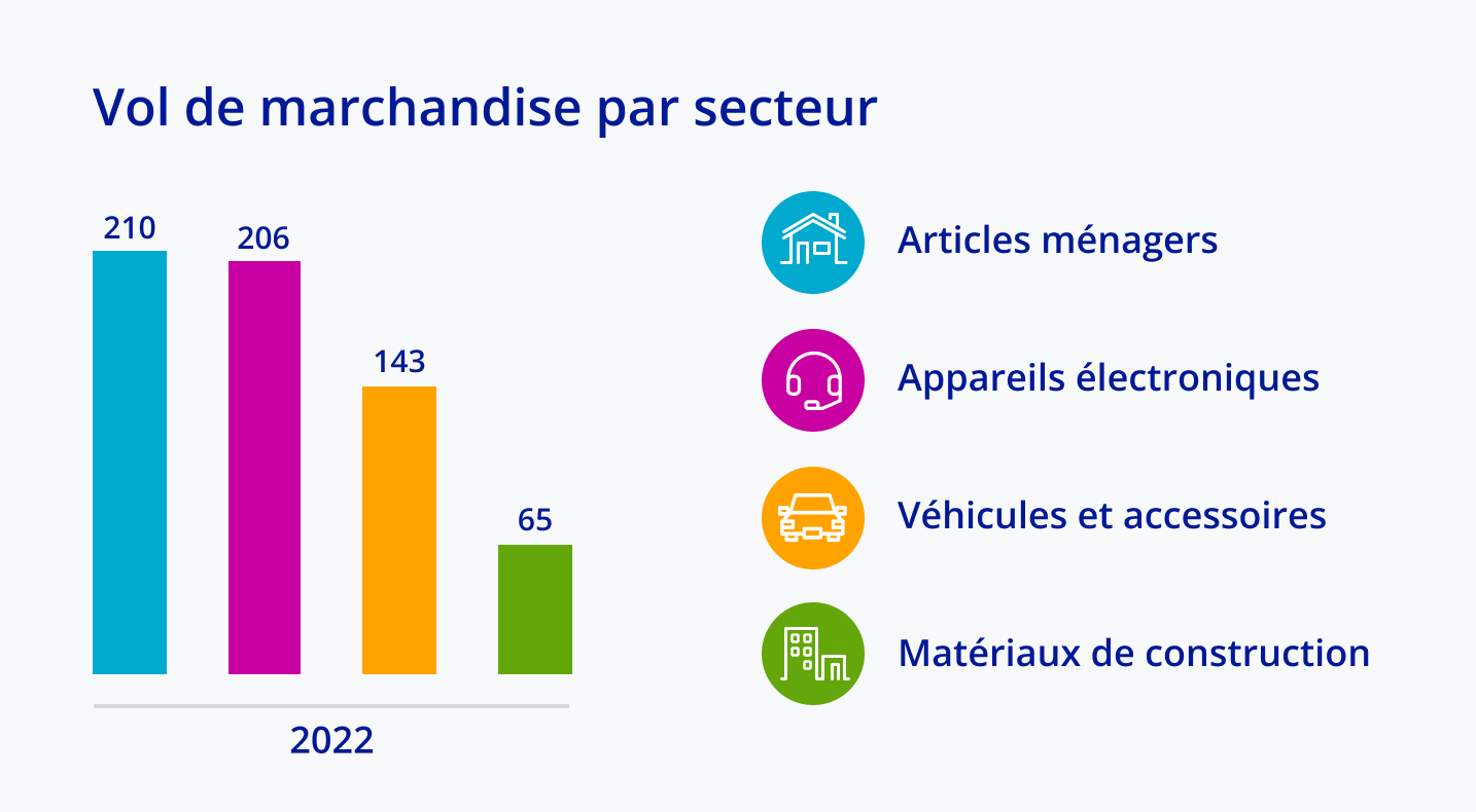Chaque année, les détaillants et les autres entreprises perdent des stocks valant plusieurs milliards de dollars(article en anglais seulement) en raison du vol, de l’obsolescence des stocks, de la fraude et des erreurs des employés. Comme nous l’avons mentionné ci-dessus, les secteurs les plus ciblés sont ceux des biens de consommation, comme les articles ménagers et les appareils électroniques, des vêtements et accessoires de luxe, des aliments et des boissons, des véhicules et des accessoires, des matériaux de construction et des produits pharmaceutiques. D’ailleurs, le vol d’appareils électroniques est en hausse(article en anglais seulement) depuis quelques années. La valeur de revente élevée de ces produits les rend attrayants pour les voleurs.
