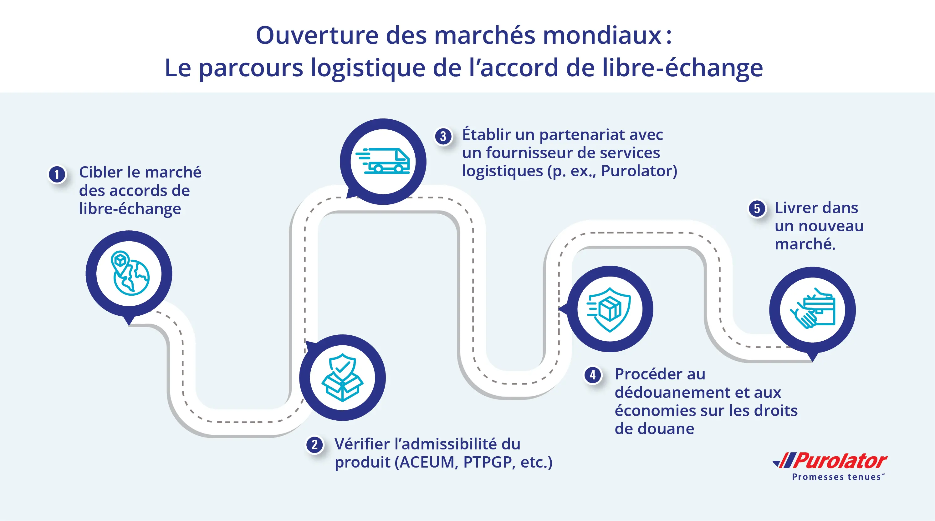 Comme pour toute expansion à l’international, il faut un plan solide pour assurer l’efficacité logistique dans l’ensemble des marchés mondiaux. Il suffit de trouver un partenaire logistique qui inspire la confiance et qui garantit que les envois seront acheminés facilement d’un pays à l’autre et arriveront à temps, chaque fois. Purolator offre cette confiance et est le choix privilégié des entreprises qui cherchent à percer de nouveaux marchés.