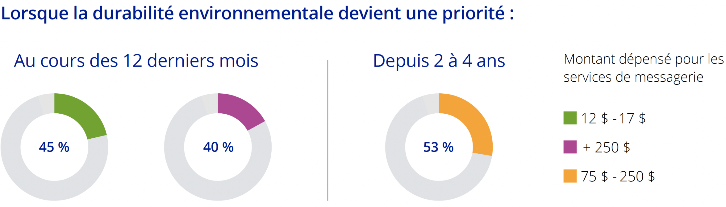 Les besoins en évolution des clients poussent davantage d’entreprises à chercher des solutions d’emballage durables et à investir dans des pratiques écologiques. Au cours des quatre dernières années, les entreprises qui se sont concentrées sur le développement durable ont augmenté leur budget consacré aux services de messagerie, ce qui reflète leur engagement à trouver des solutions avantageuses sur les plans environnemental et opérationnel.