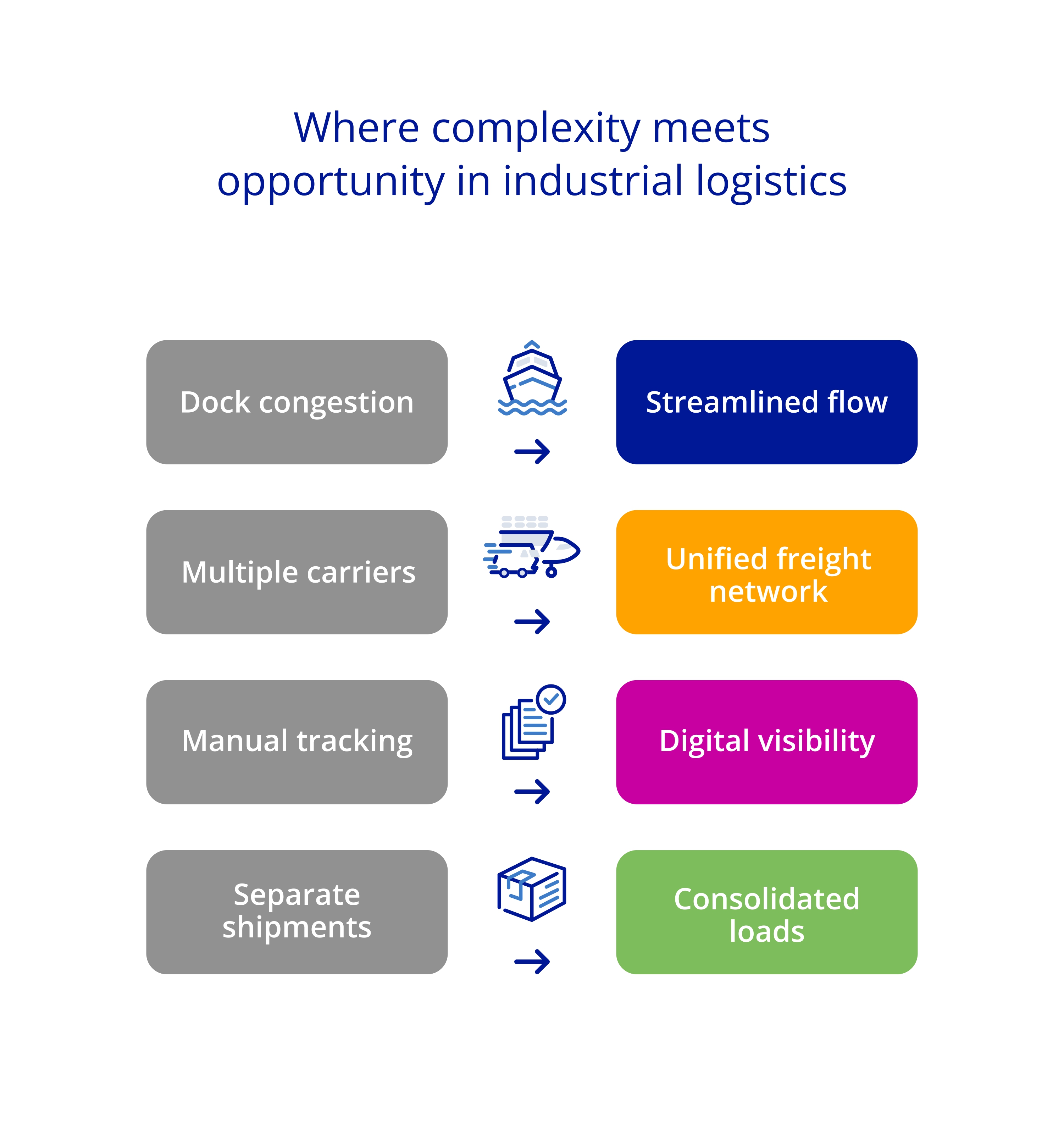 - Freight consolidation programs that reduce dock congestion