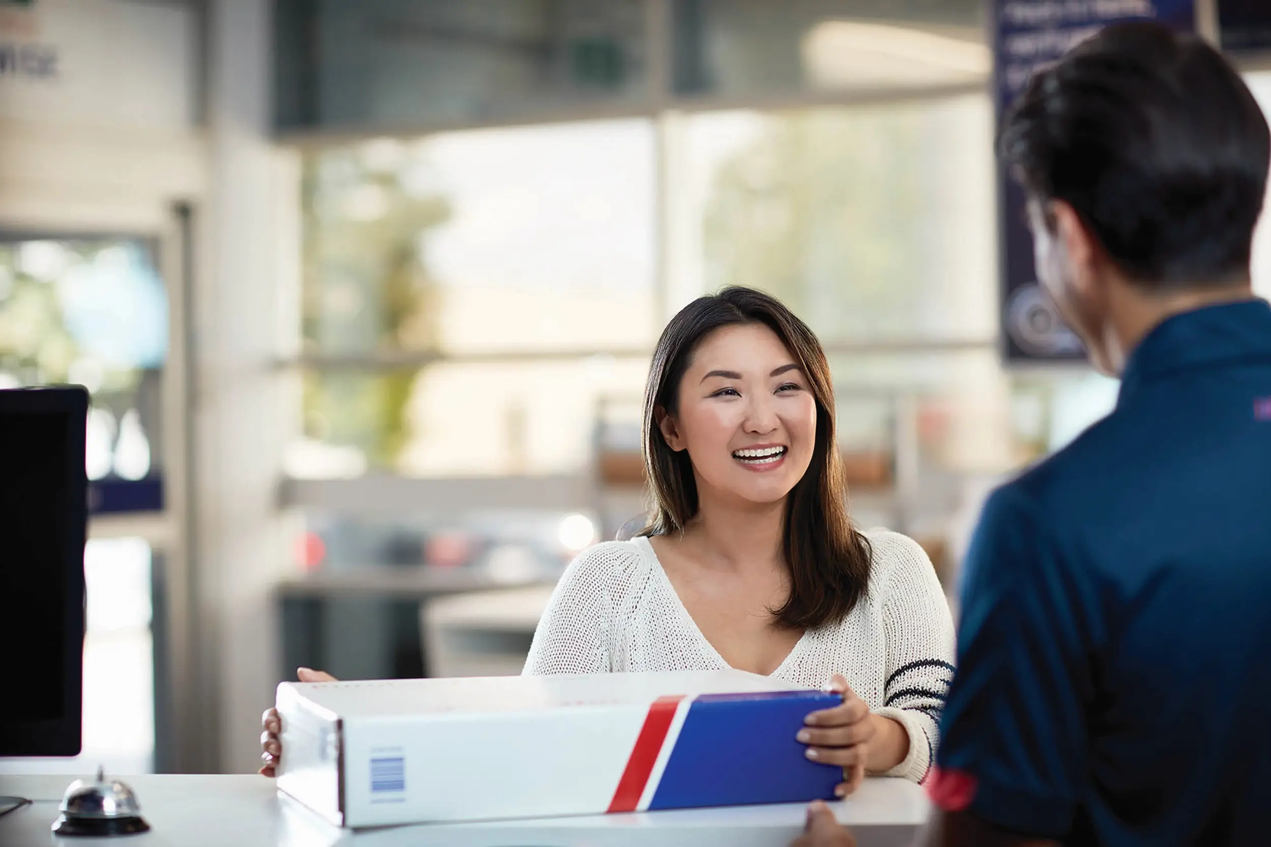 woman opening delivery from provider, brand loyalty