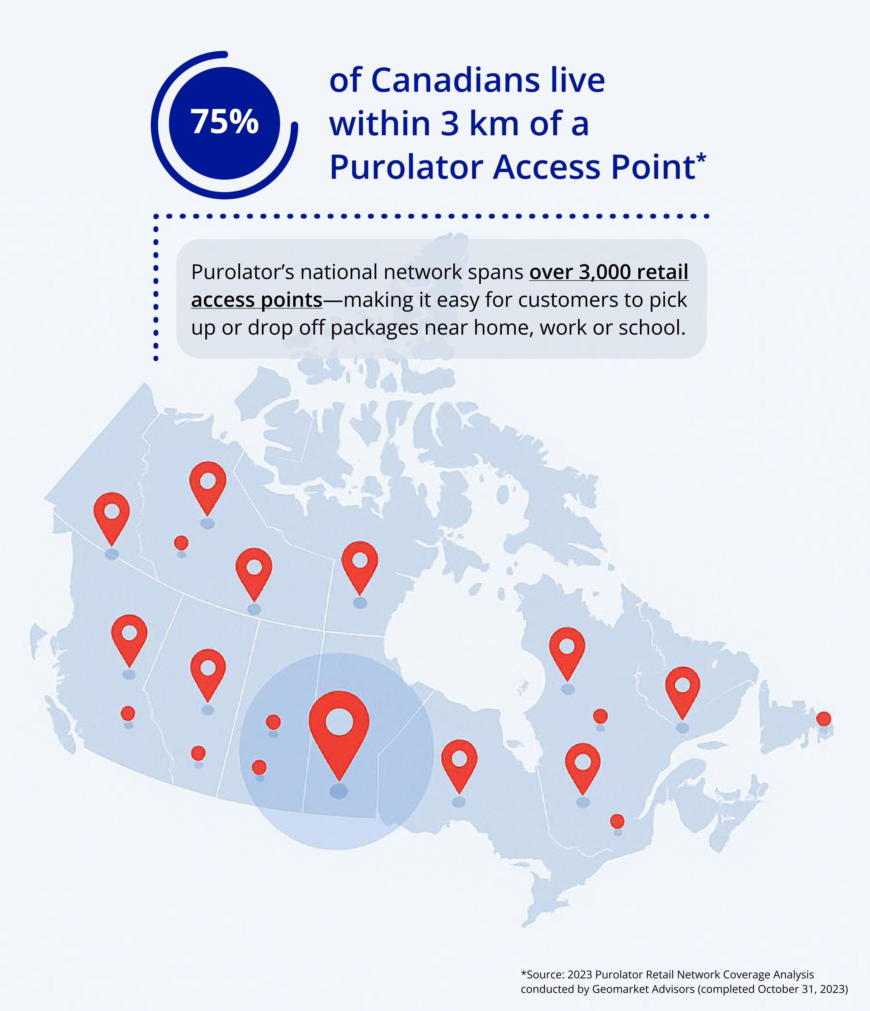 *Source: 2023 Purolator Retail Network Coverage Analysis conducted by Geomarket Advisors (completed October 31, 2023)
